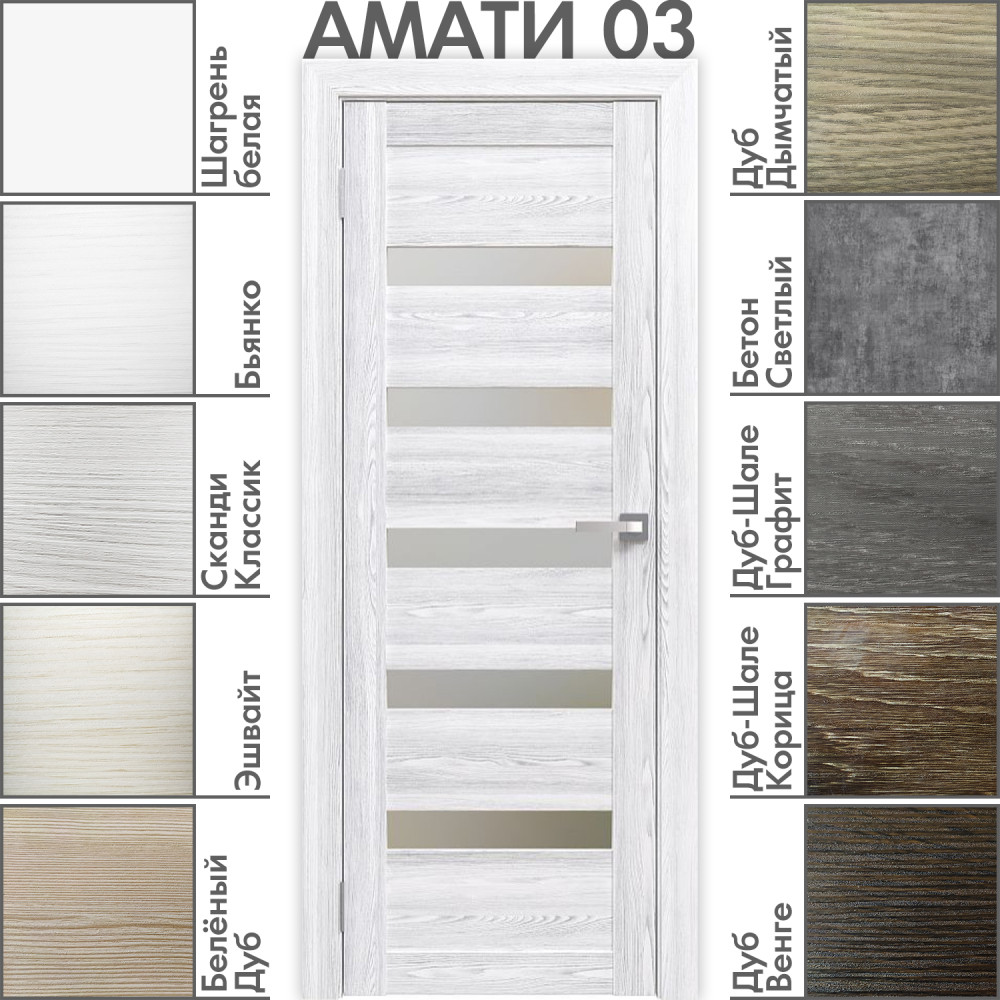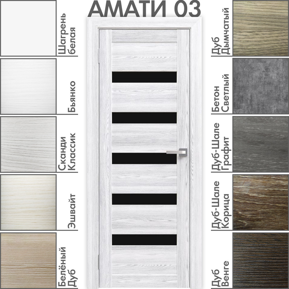 Доступная элегантность для вашего интерьера. Модель «Амати 03» сочетает в себе демократичную стоимость, проверенную надёжность и современный дизайн с широкими стеклянными вставками. Идеальный выбор для тех, кто ищет оптимальное соотношение цены и качества.