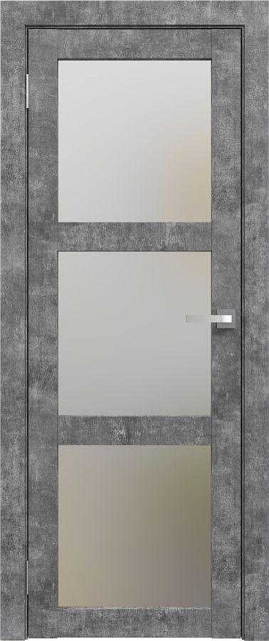 Сложная геометрия остекления: В отличие от стандартных решений, полотно разделено тремя стеклами. Такой дизайн добавляет интерьеру визуальной сложности, глубины и современной графичности, превращая дверь в художественный объект.