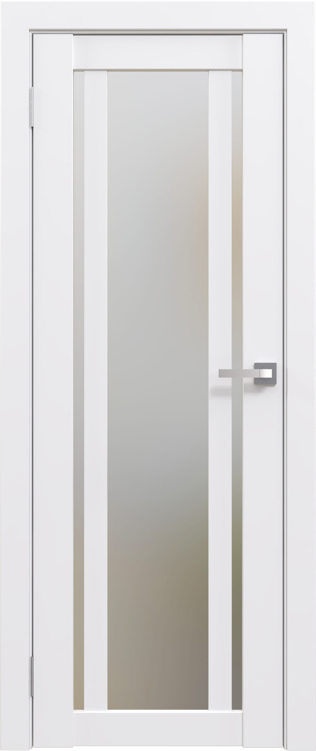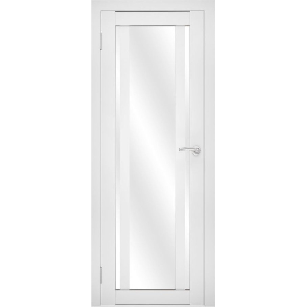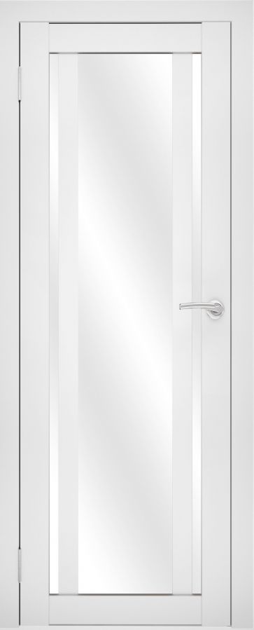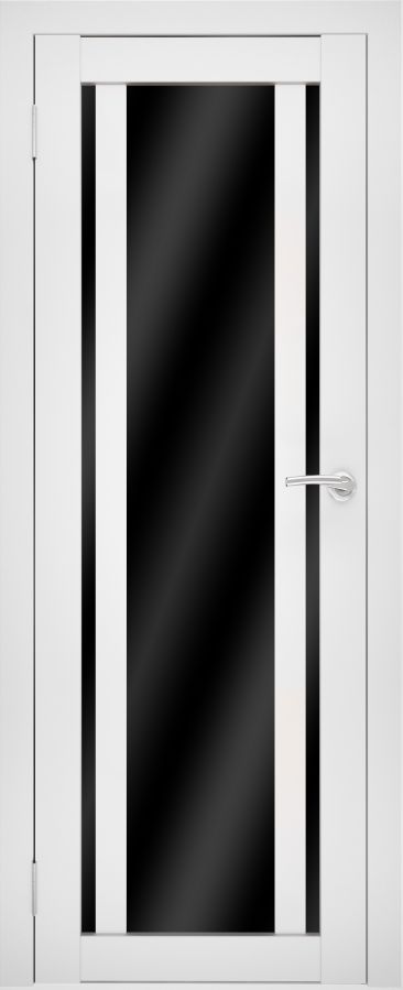 Отличительной чертой модели является уникальная комбинация остекления: центральная часть полотна занята широкой вертикальной стеклянной панелью, идущей на всю его высоту, которая фланкирована двумя симметричными узкими вертикальными вставками по краям. Такой дизайн создает эффектную «раму в раме», добавляя глубины и архитектурной выразительности. Все стекла представлены в трех декоративных вариантах: мягкий «белый лакомат», глянцевый «белый лакобель» и контрастный «черный лакобель». Это позволяет выбрать как гармоничный светлый образ, так и создать драматичный графический акцент, где центральная панель и боковые вставки могут быть выполнены в одном цвете или в контрастном сочетании.